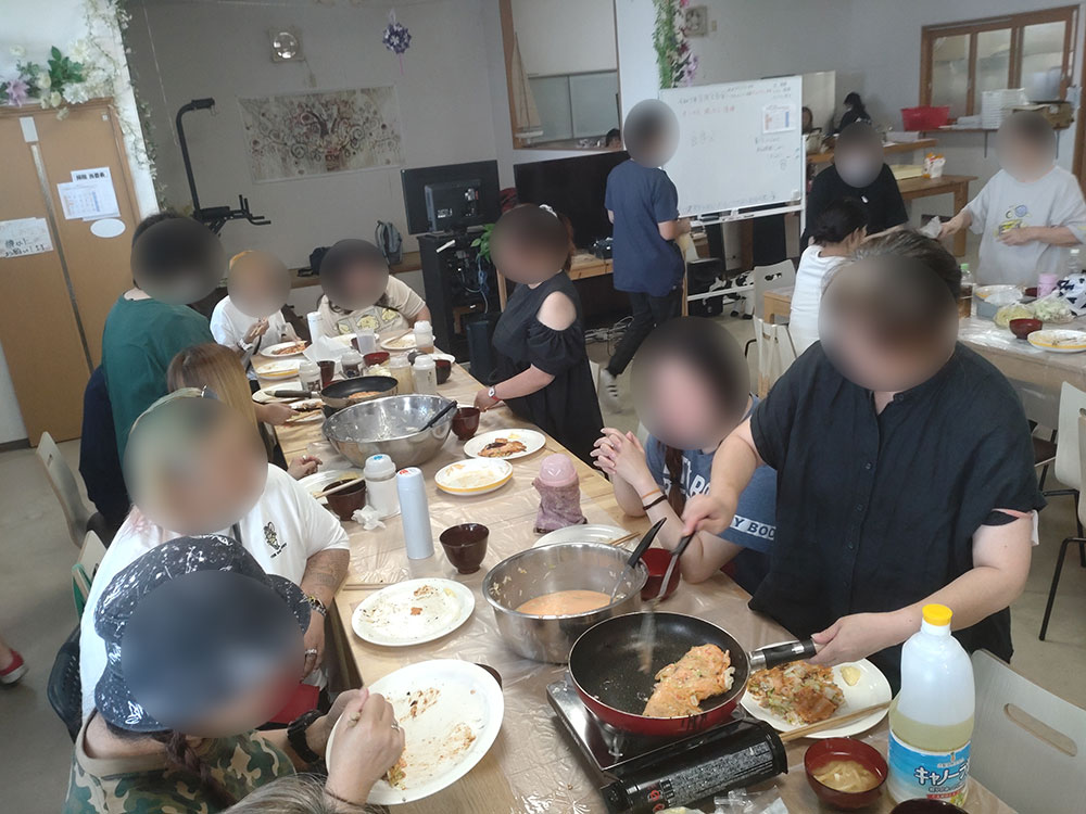 食事会を開催した当初は、誰かに任せて、食べるだけの利用者様が多くいましたが、回数を重ねるごとに、各々役割を担って、一緒に楽しまれていました。