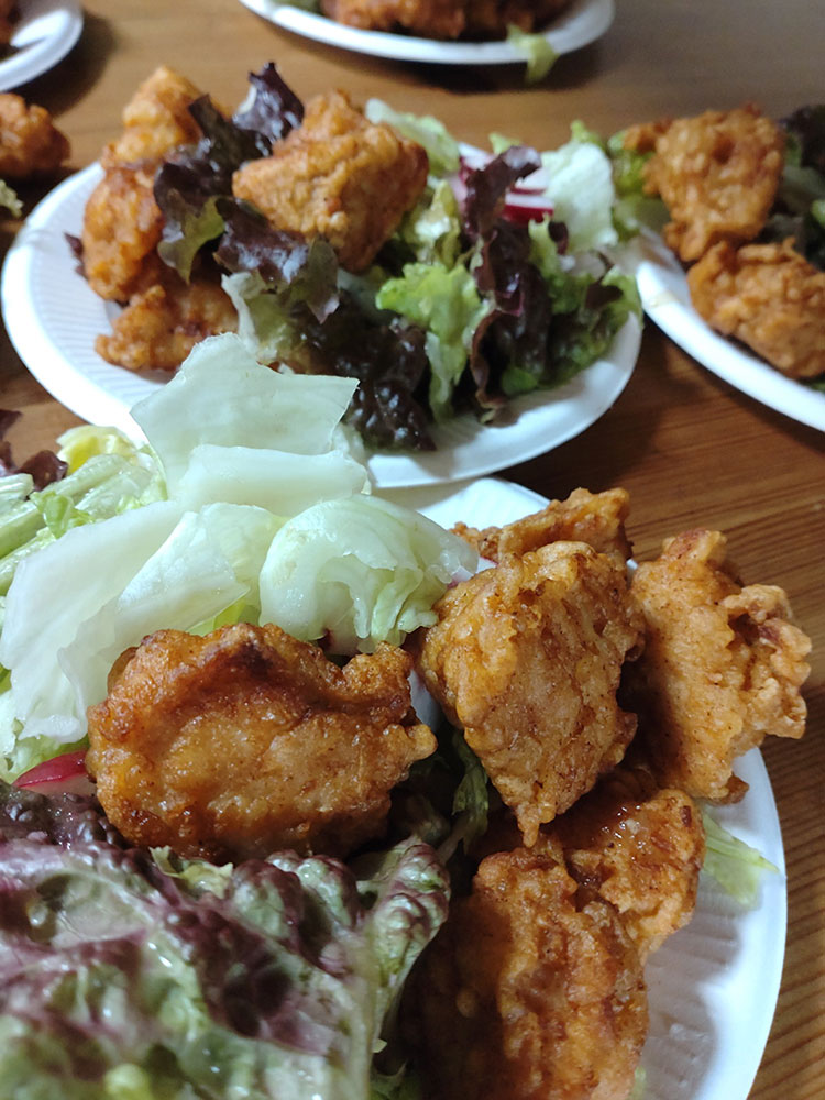 ちらし寿司、唐揚げ、スープ作りに、野菜カット、麦茶のお支度、デザートのあんこ巻き!
