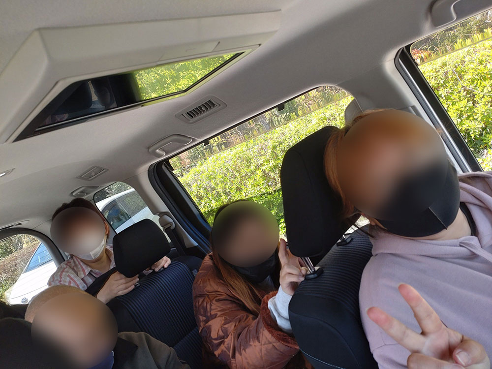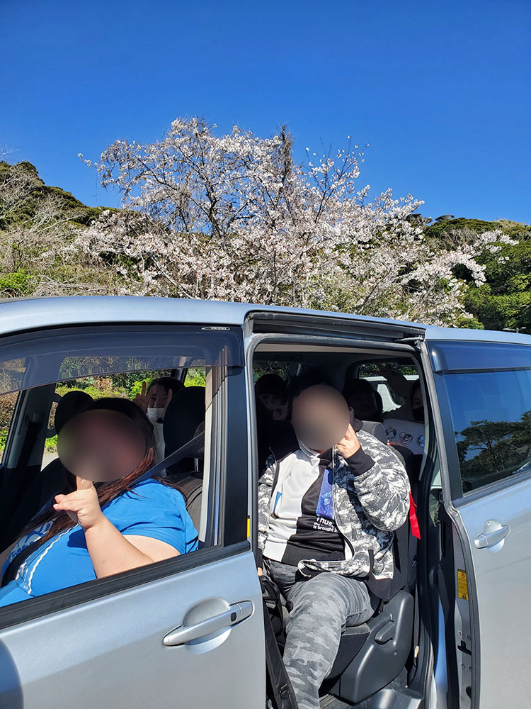 当施設では飲酒欲求を避ける為に車の中から桜を見学しました