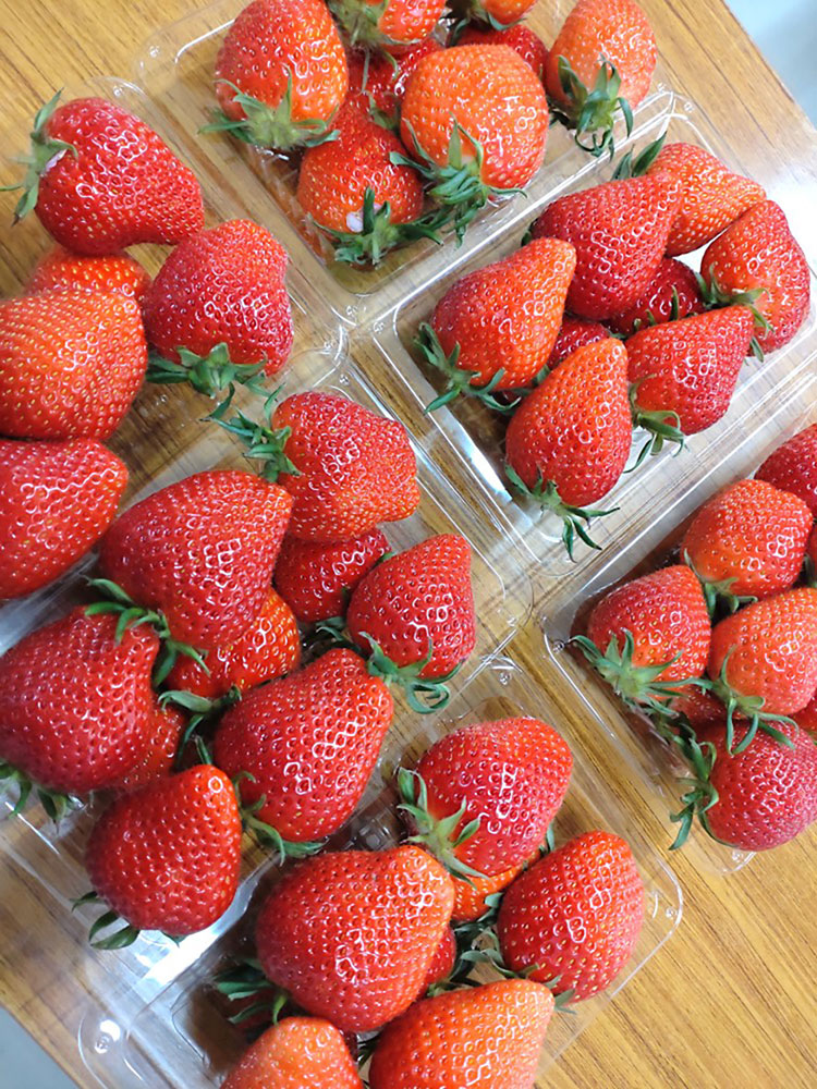 更に代表からデザートをいただきました大〜きな、いちご!「甘くずっぱくて、う〜ん美味し〜い」満足、満足!