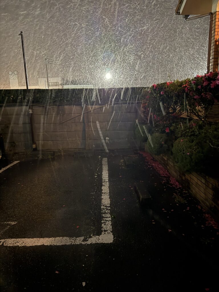 午前3時に気づいたのです。いなびかりが機関銃で撃たれている様なヒカリが怖いほど続いて光った?私の人生の中で初めての自然界との遭遇。マンションに暮らしていた私は、今ガラス張りもある一軒家に住み、北条海岸から近い館山駅から1分ほどの地域に住んでいます。ピピピ、ビビビ,と続く遠く高く雷が鳴る雹が降る壁に,ガラスにぶつかってガラスが割れそうに感じた。怖い。孫とその光から逃れてベッドに入り,目を瞑ったが?雨は雨戸を叩き続いていた。40分程の嵐の様な夜中でありました。